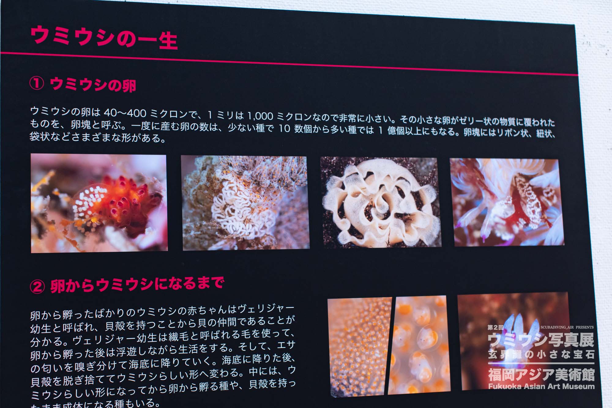 玄界灘に生息する小さな生物『ウミウシ』達の可愛らしい表情と色彩を、ご来場頂いた皆さんにお届けしました。